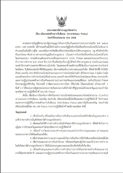 กิจกรรมการต่อต้านการรับสินบน(Anti-Bribery Policy)
