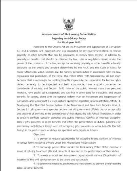 ประกาศเจตนารมณ์ที่จะไม่รับของขวัญและของกำนัลทุกชนิดจากการปฏิบัติหน้าที่ (No Gift Policy)