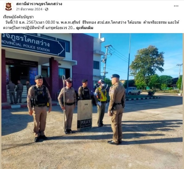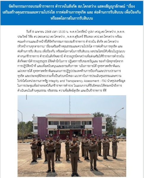 วันนี้(18 ธ.ค. 2567)เวลา 08.00 น. พ.ต.ท.สุรินร์ ธิรินทอง สวป.สภ.โคกสว่าง ได้อบรม ด้านจริยะธร...