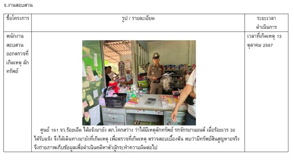พนักงานสอบสวนออกตรวจที่เกิดเหตุ ลักทรัพย์
