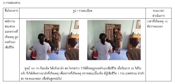 พนักงานสอบสวนออกตรวจที่เกิดเหตุ ผูกคอตัวเองเสียชีวิต
