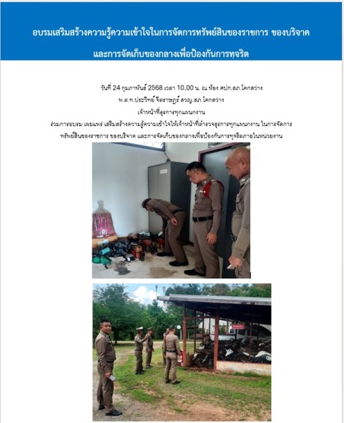 อบรมเสริมสร้างความรู้ความเข้าใจในการจัดการทรัพย์สินของราชการ ของบริจาค และการจัดเก็บของกลางเพื...