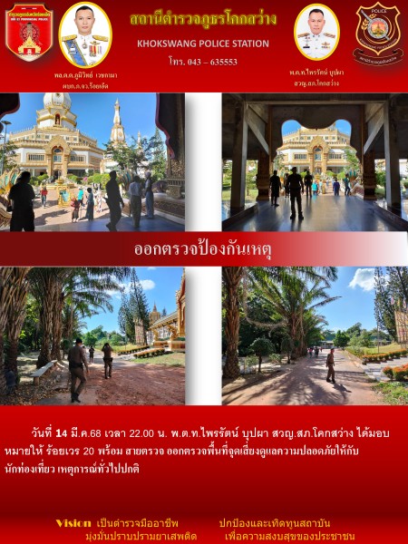 ออกตรวจพื้นที่จุดเสี่ยงดูแลความปลอดภัย