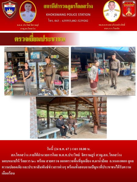 วันที่ 26 พ.ย. 67 เวลา 08.00 น. พ.ต.ท.ประวิทย์ จิตราษฎร์ สวญ. สภ.โคกสว่าง พ.ต.ท.ประวิทย์ วิ...